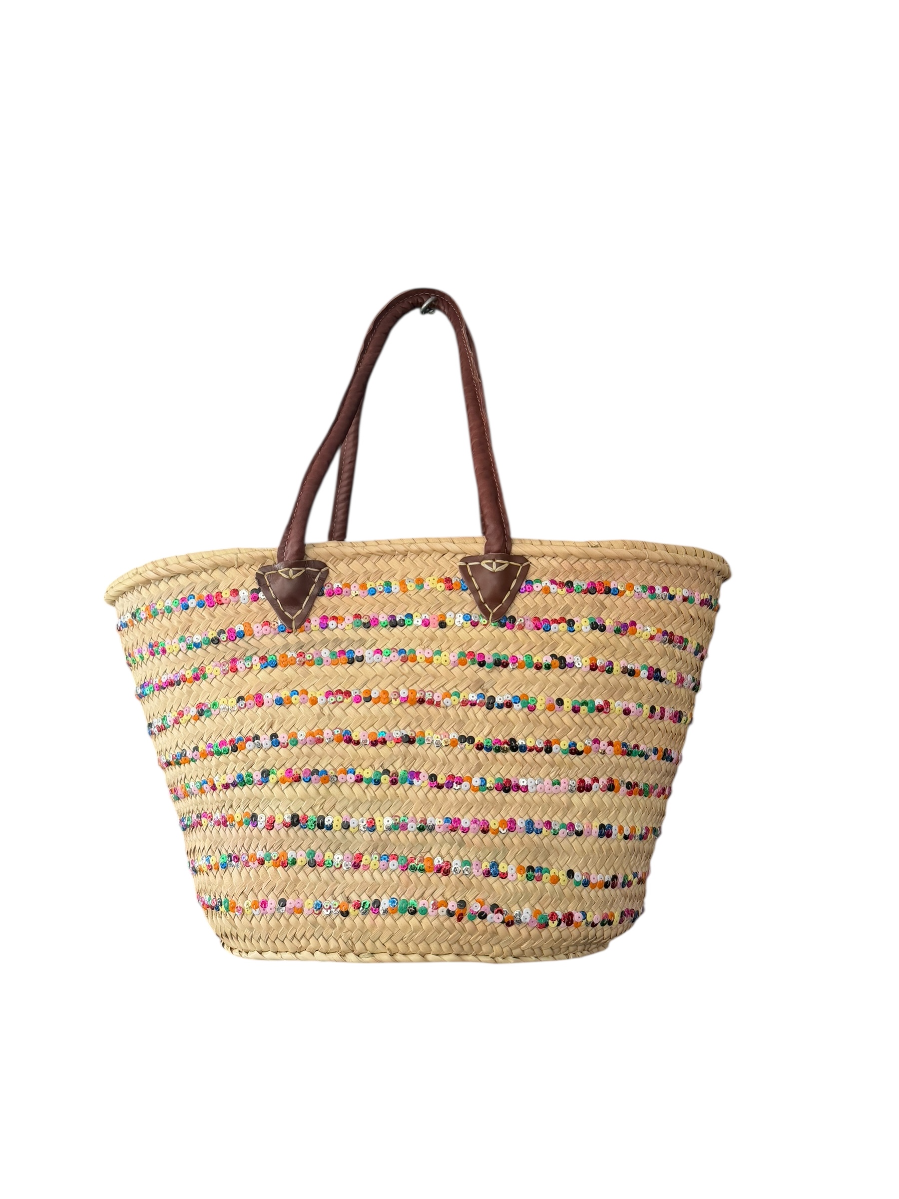 Couffin Marrakech poignée Longue en Cuir T10 orné de paillettes