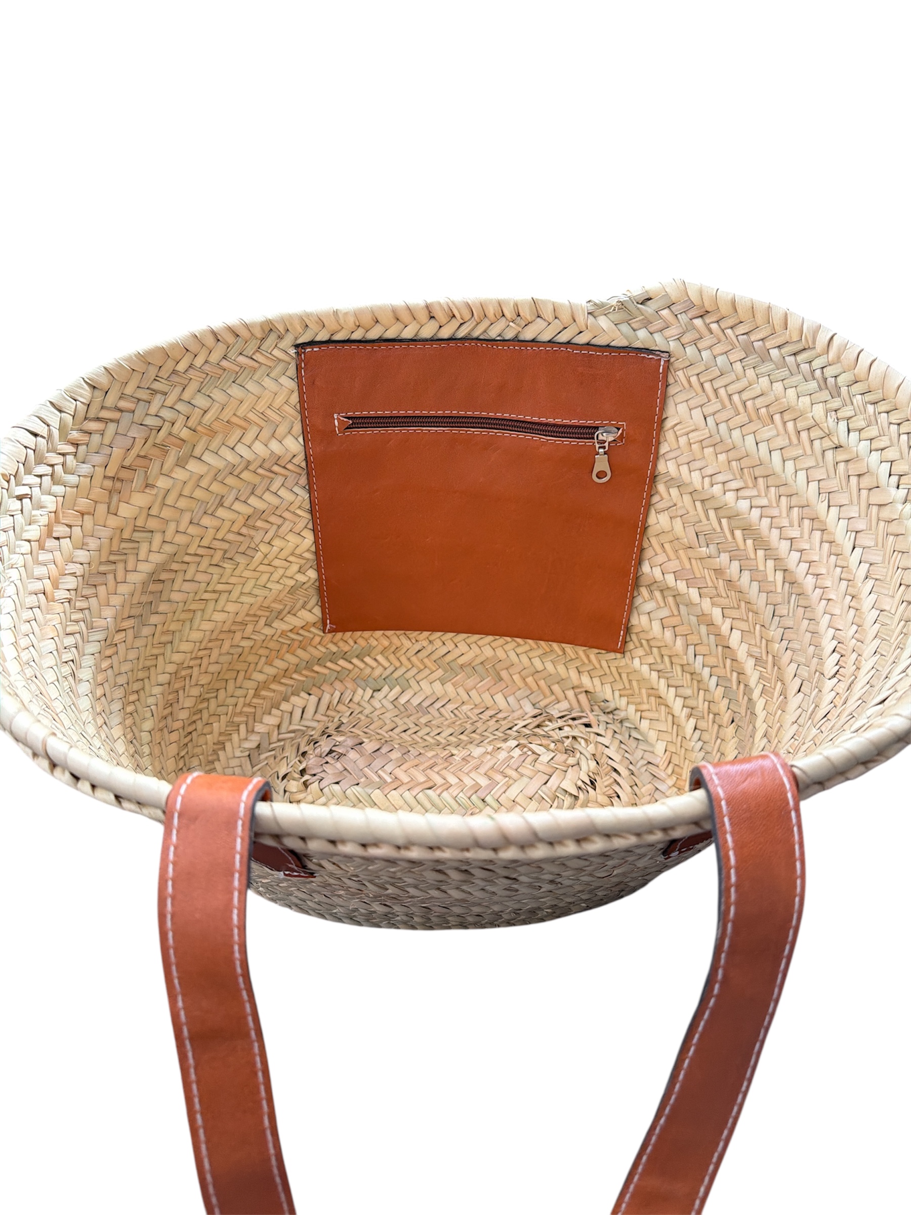 Couffin Marrakech Anse longue Plate avec poche cuir intérieur