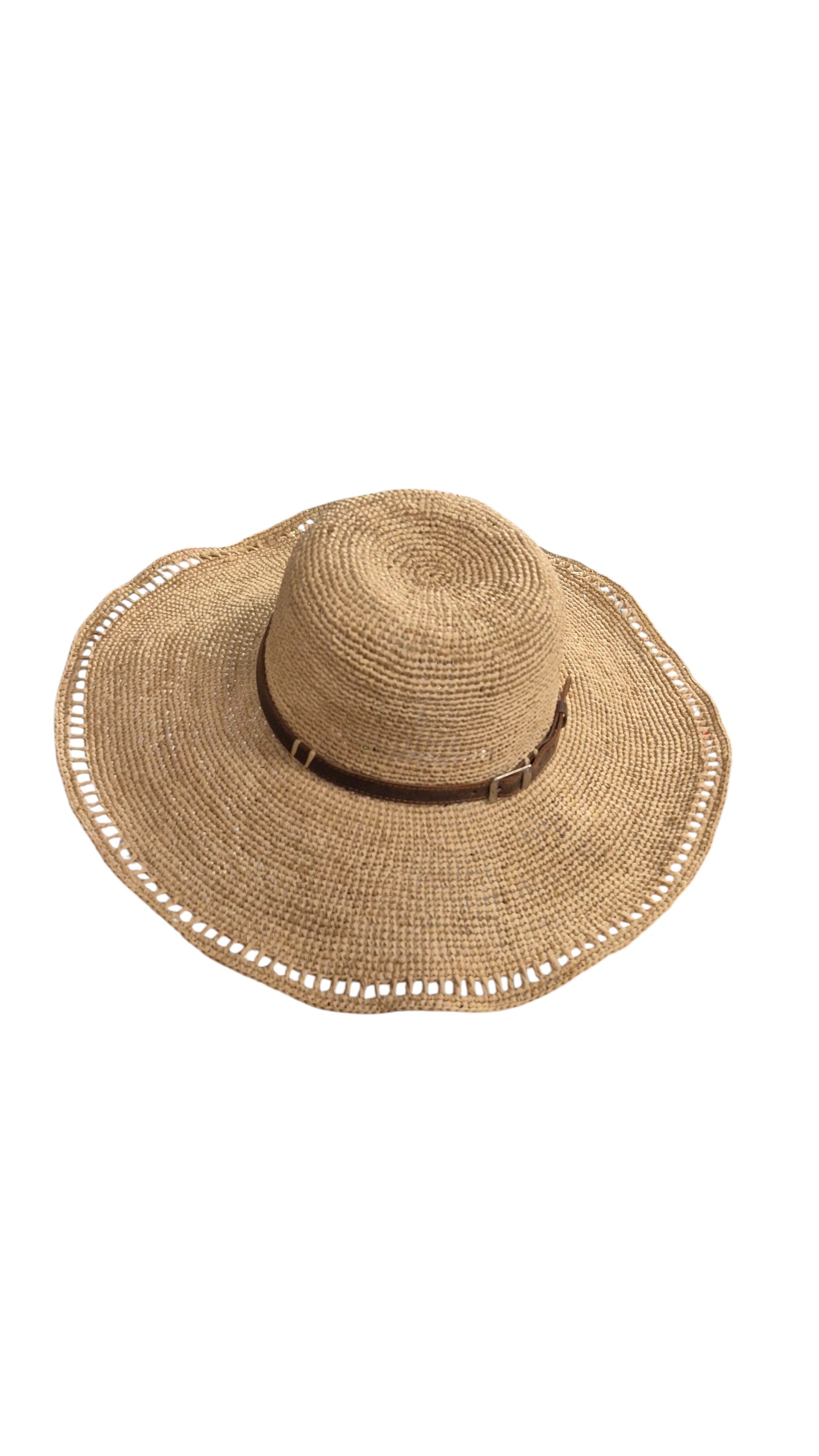 Chapeau Ajouré MANON, crocheté entièrement à la main en fibre naturelle de raphia.