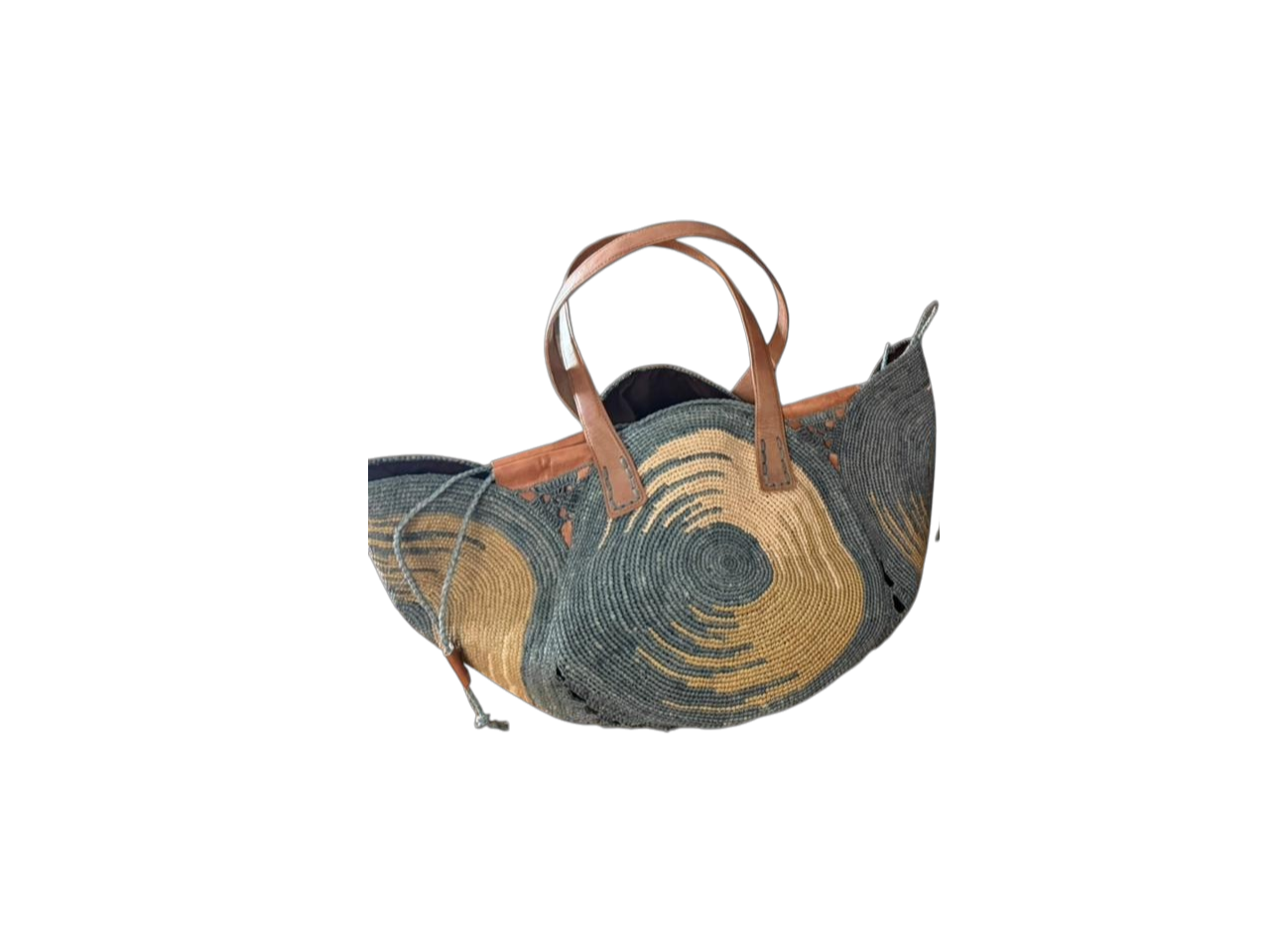Fermeture avec cordelette en raphia.