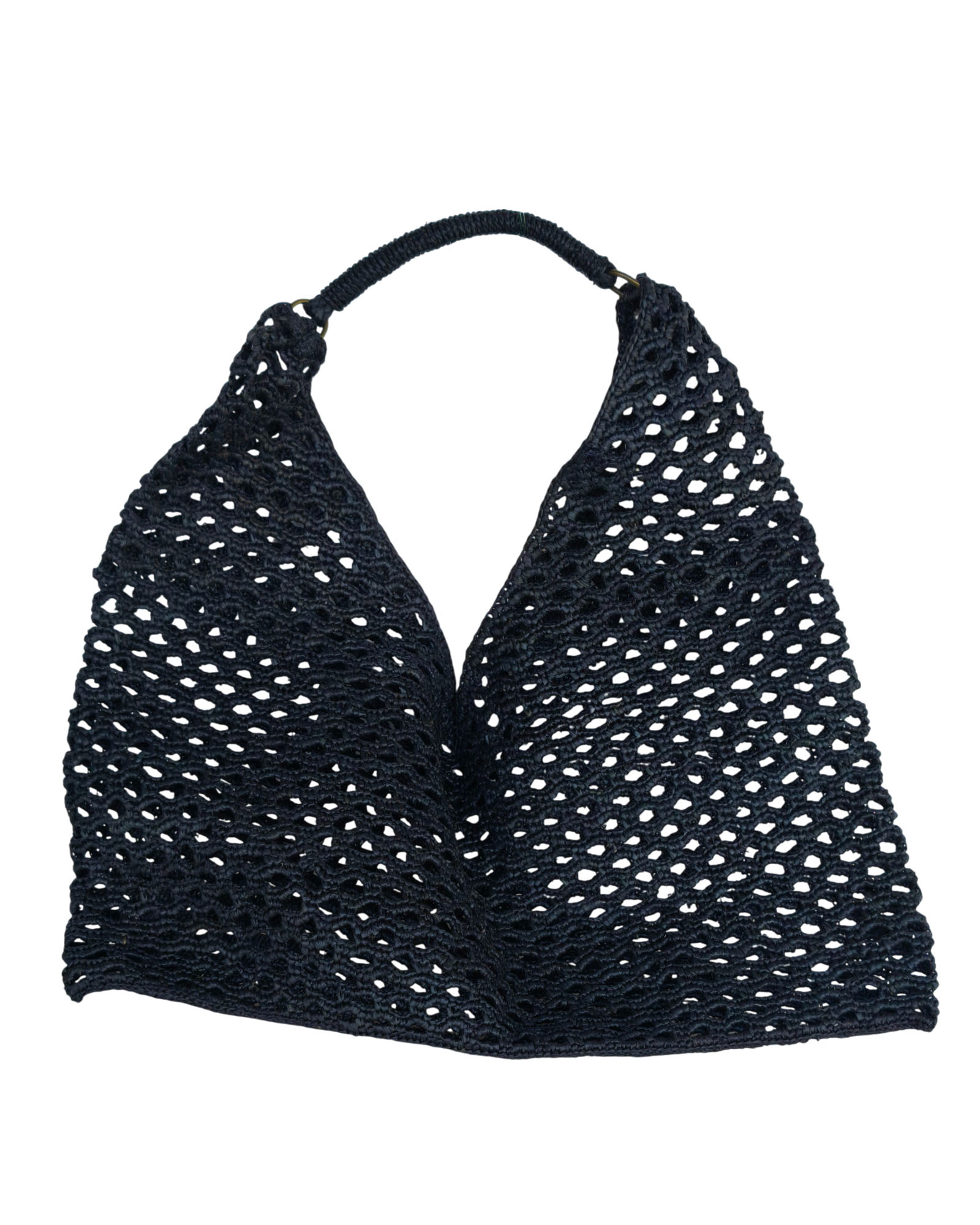 Le sac KINTANA est un sac crocheté entièrement à la main avec des fibres naturelles de raphia.