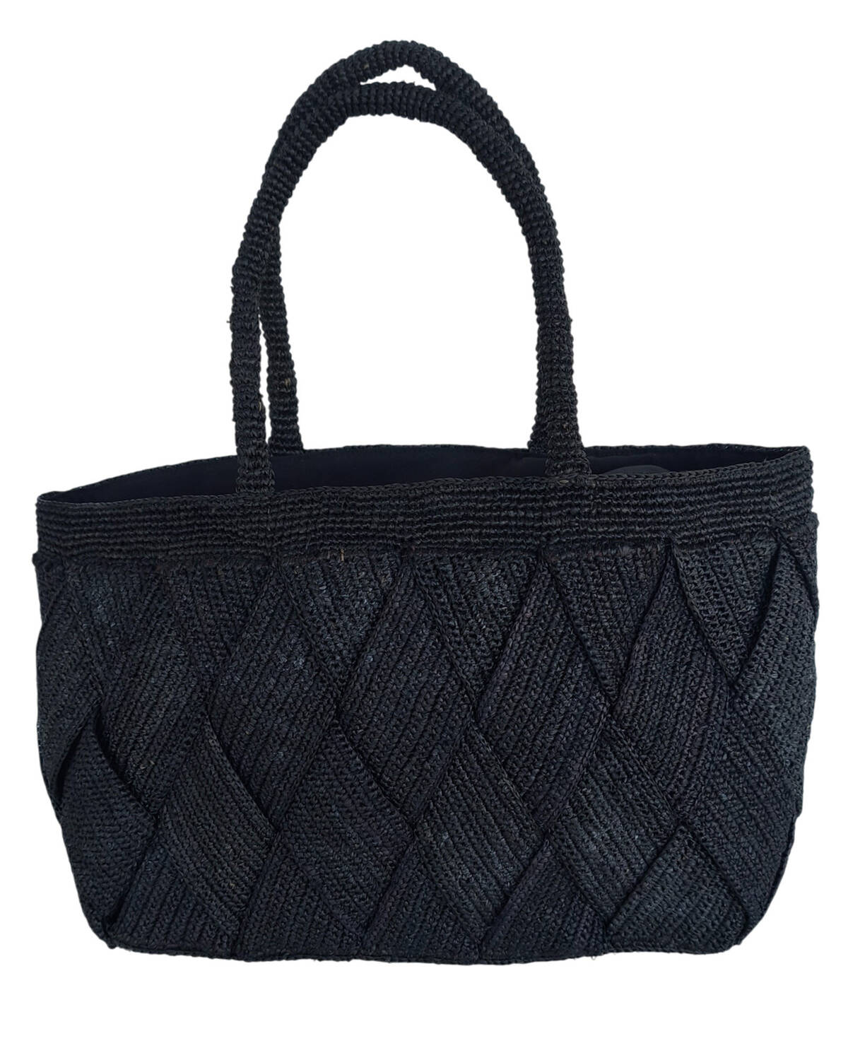 Le sac LOSANGES est un sac crocheté entièrement à la main avec des fibres naturelles de raphia.