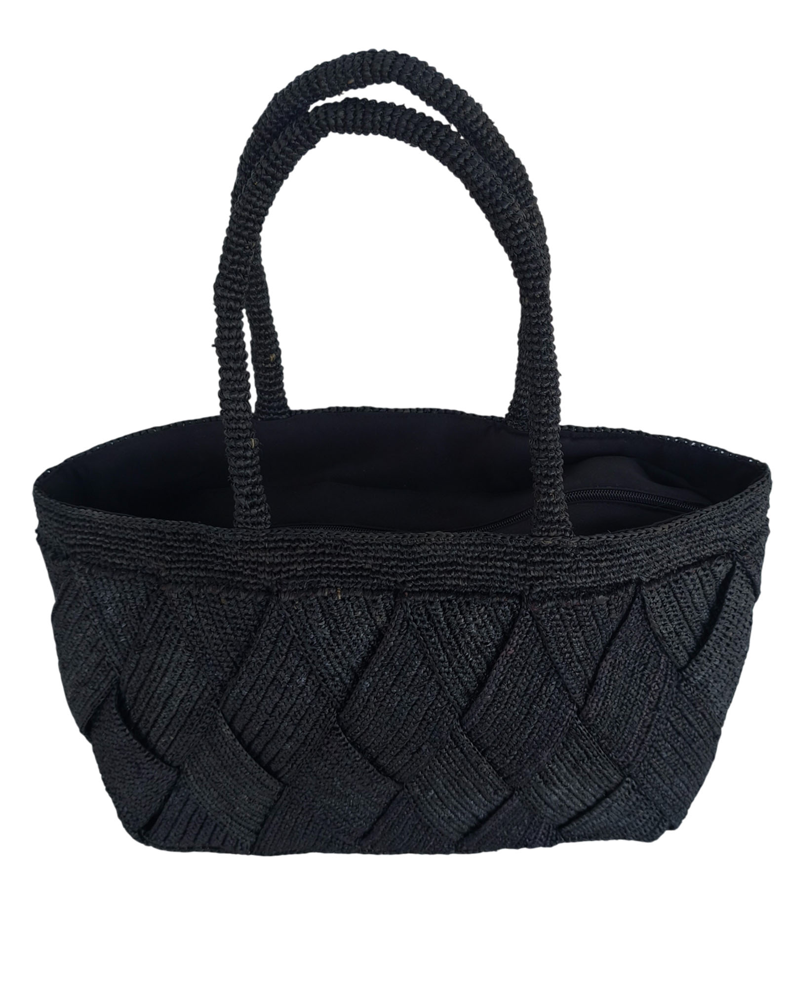 Le sac LOSANGES est un sac crocheté entièrement à la main avec des fibres naturelles de raphia.