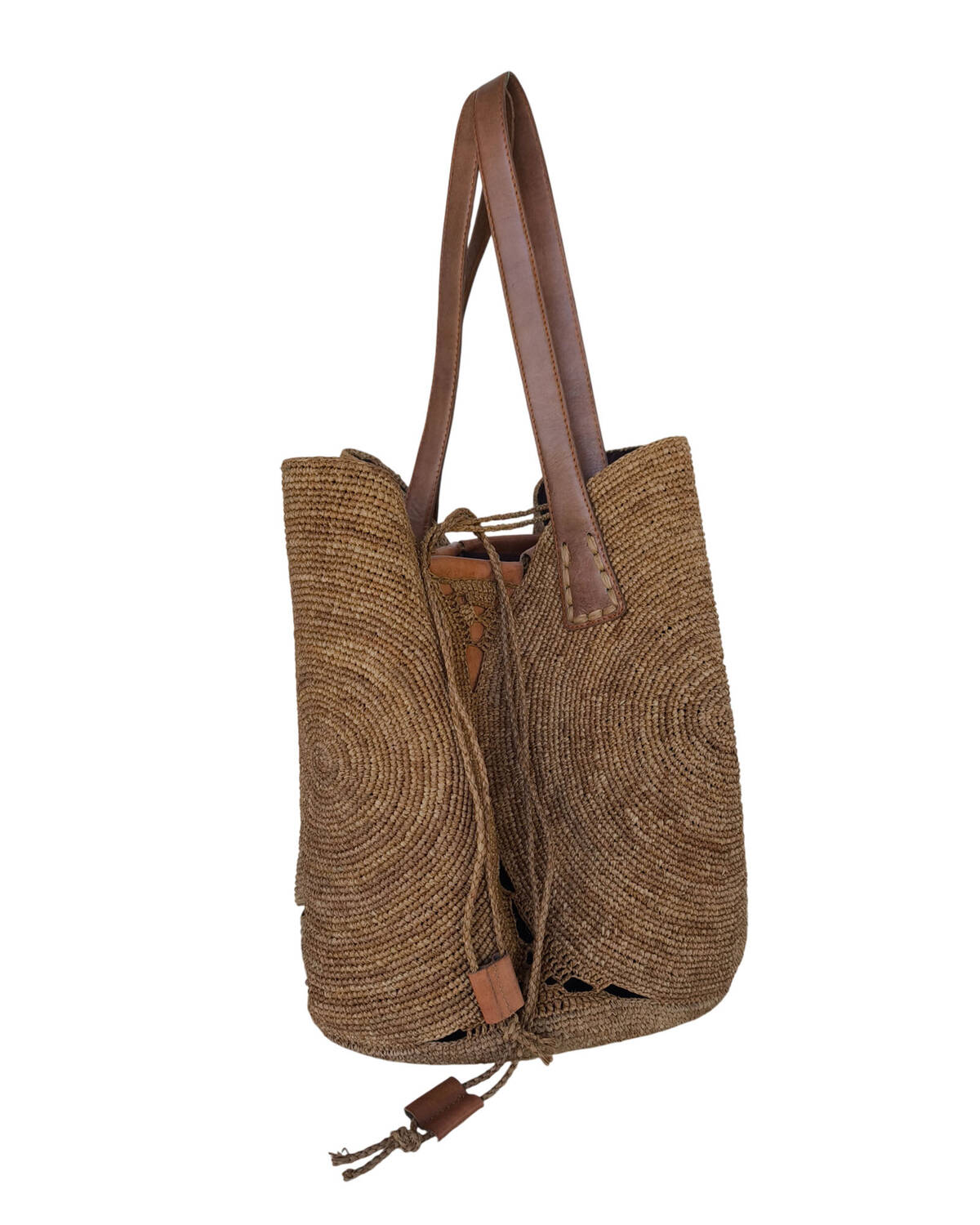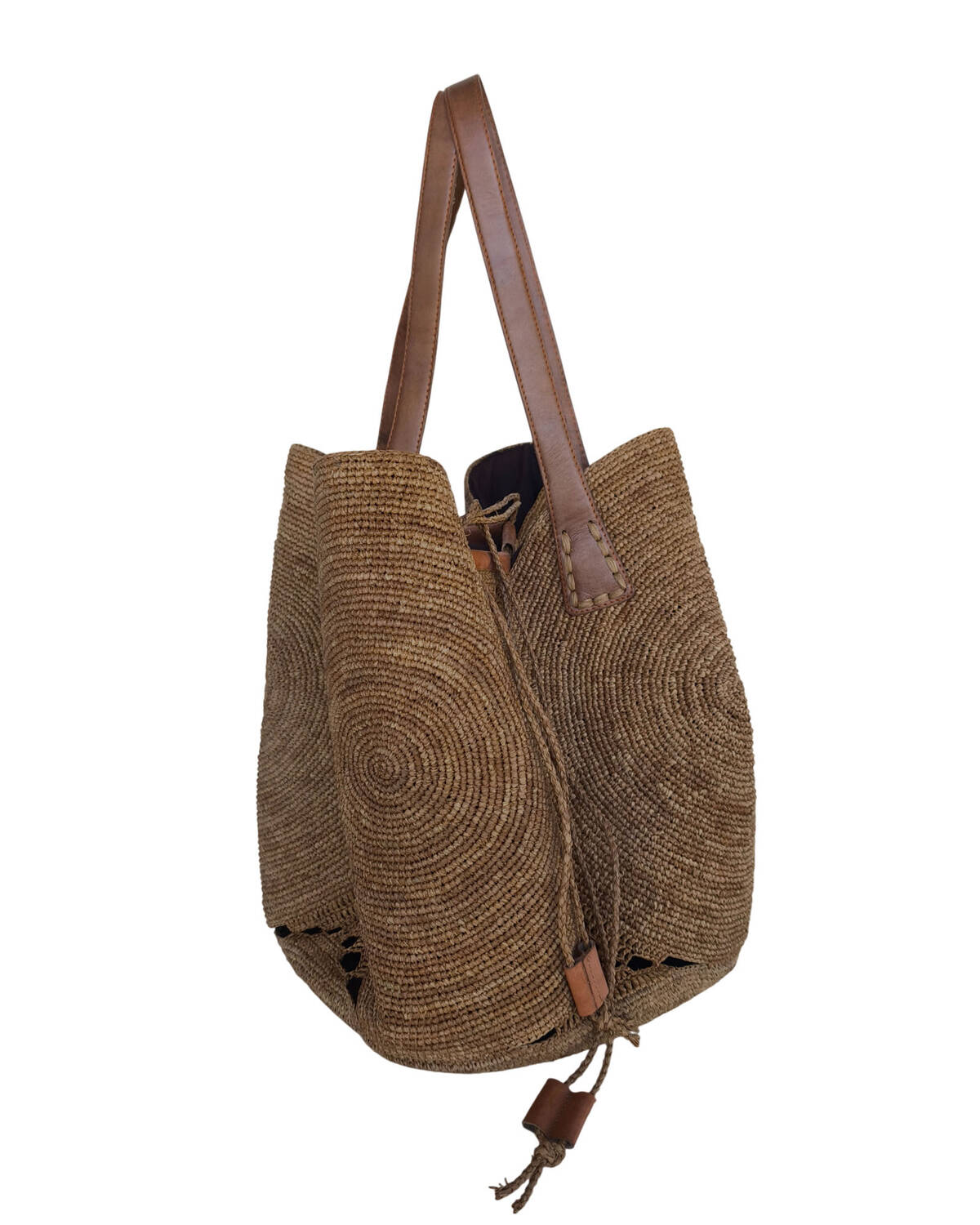 Fermeture avec cordelette en raphia.