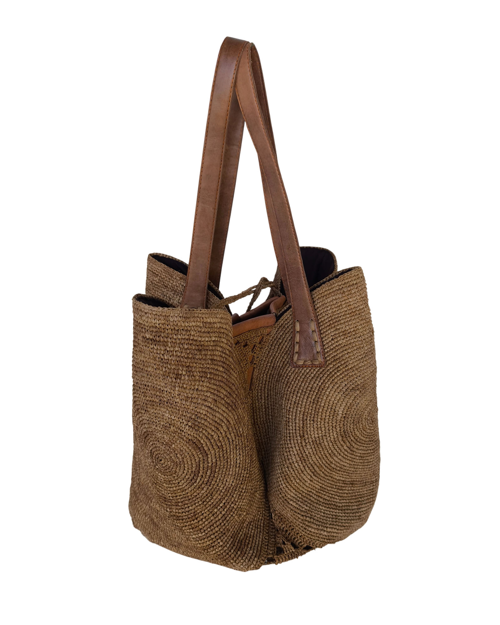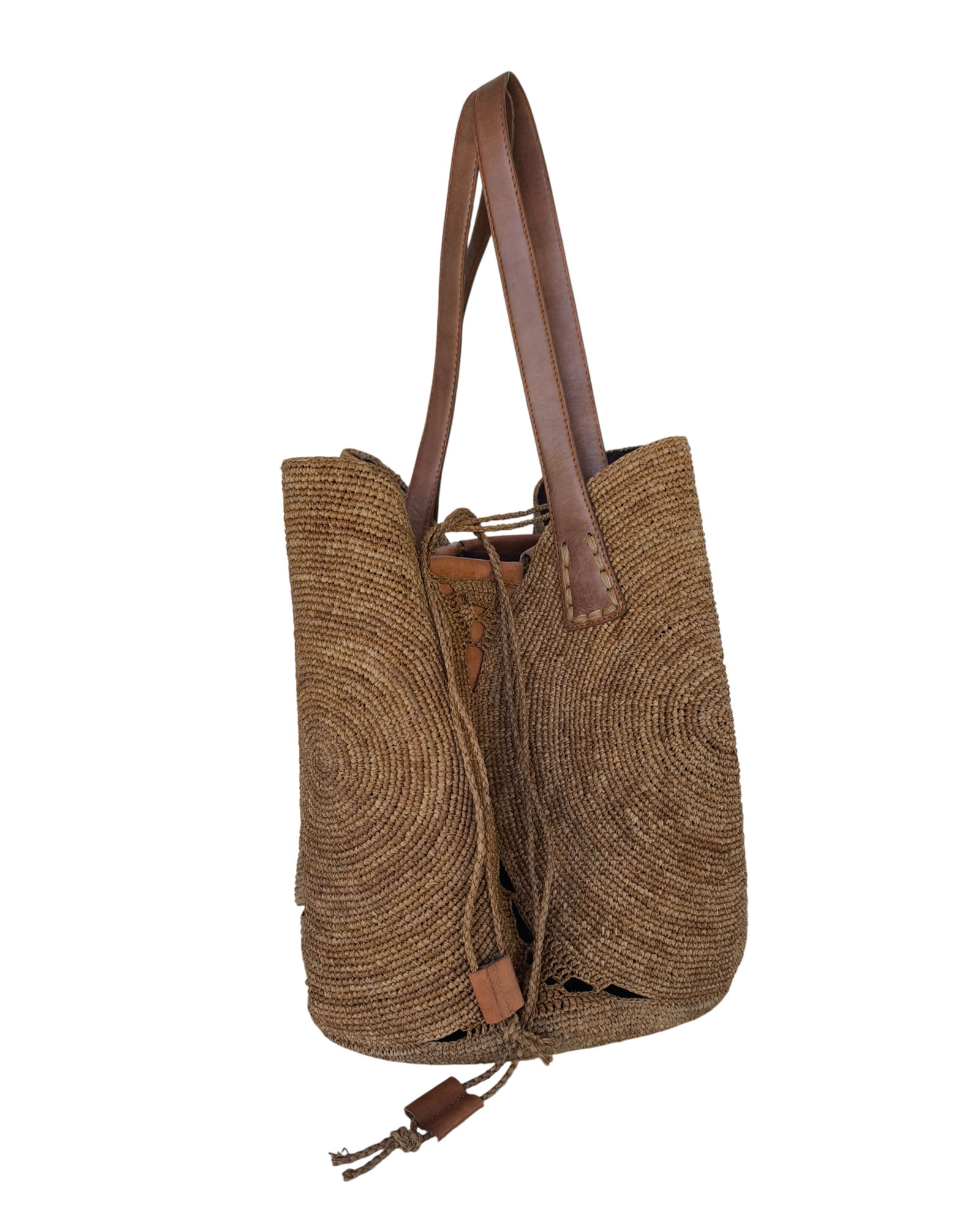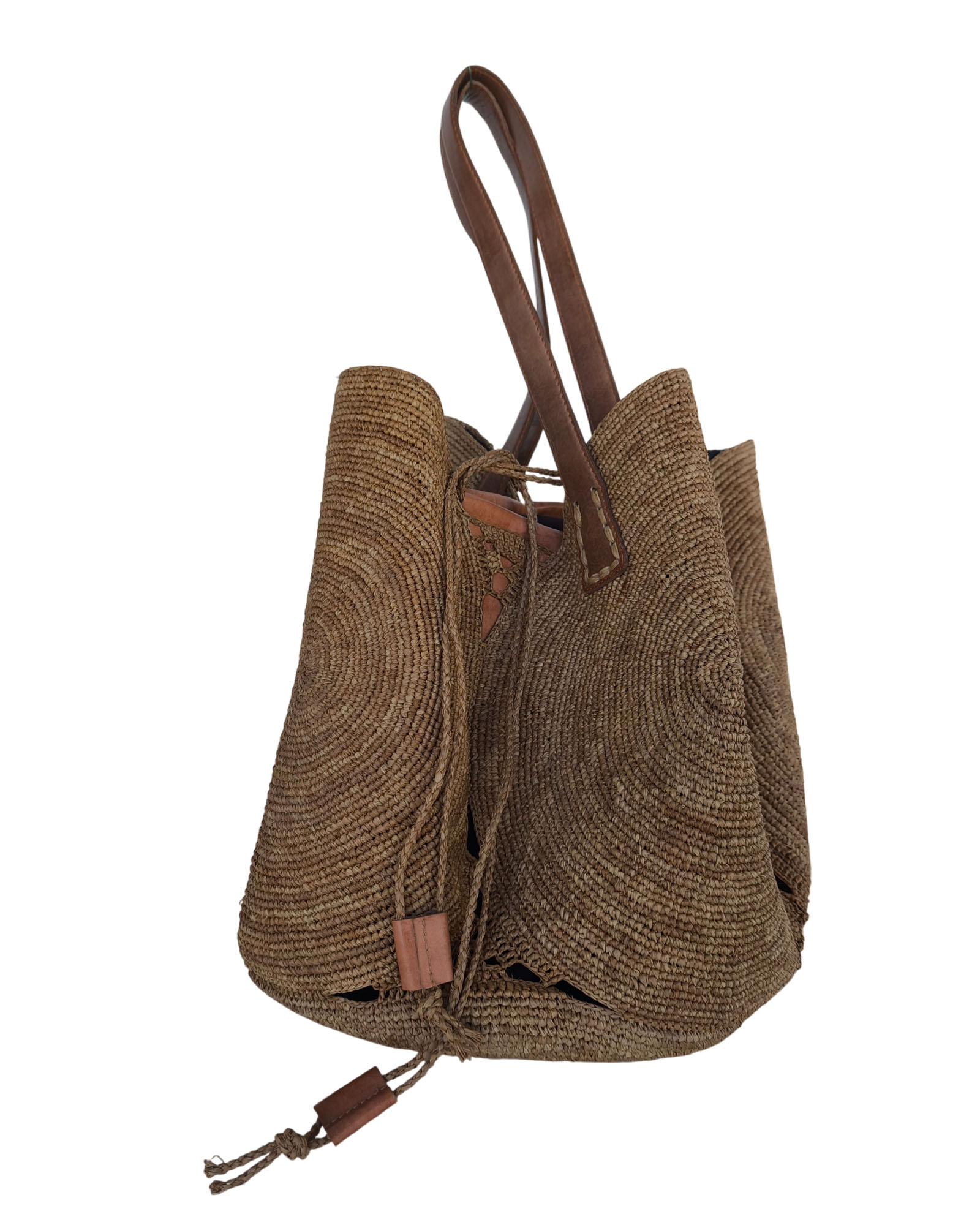 Fermeture avec cordelette en raphia.