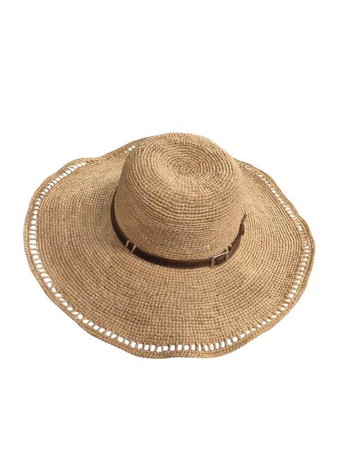 Chapeau Maria ajouré crocheté à la main avec des fibres naturelles de raphia.