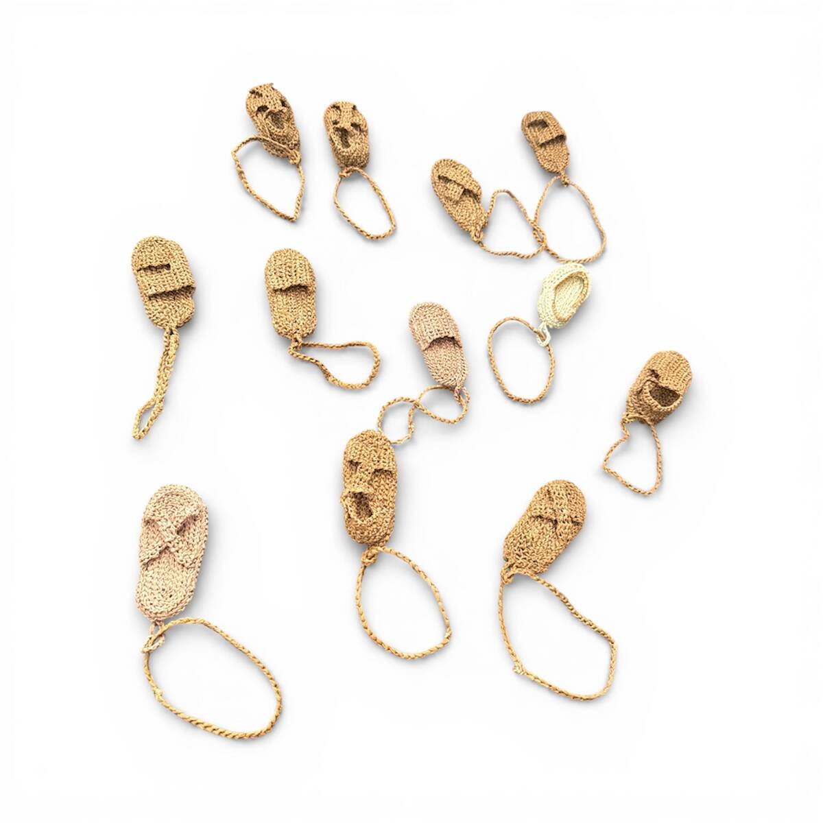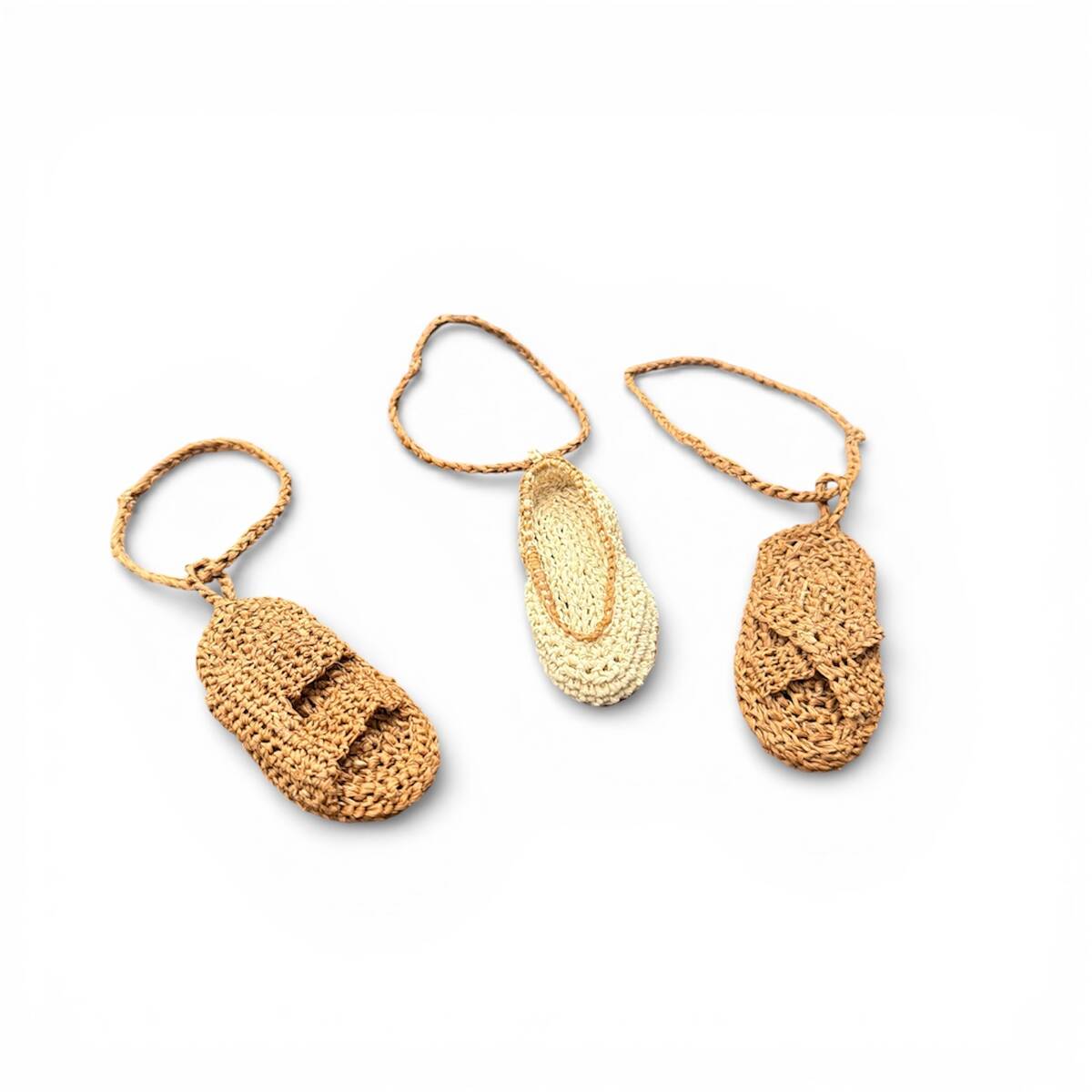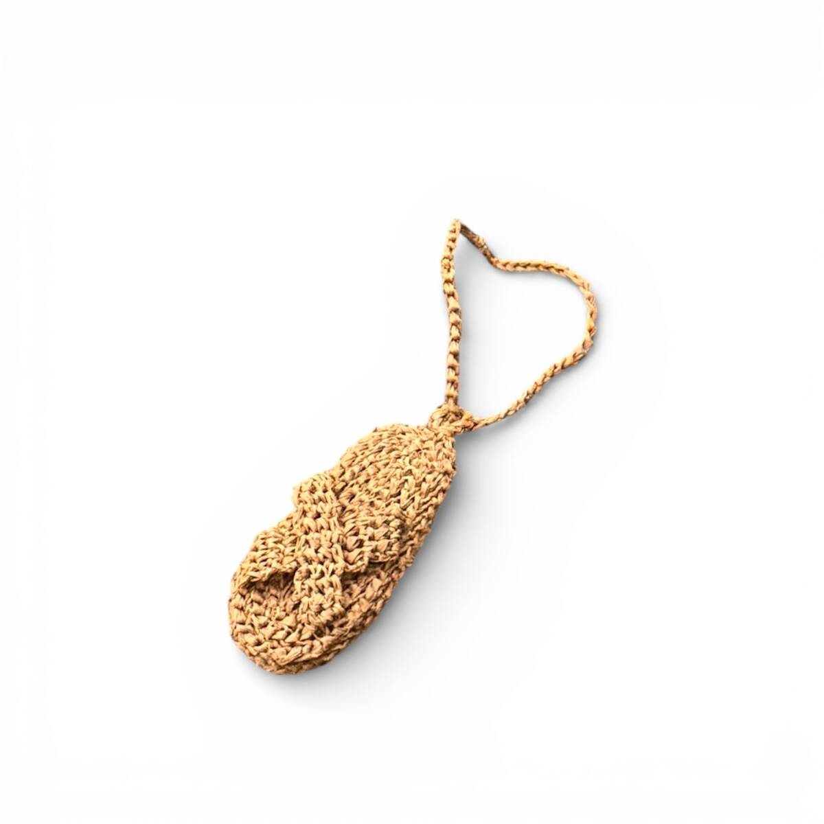 accessoires décoratifs crochetés entièrement à la main avec des fibres naturelles de raphia. Ils apportent une touche artisanale et élégante à vos sacs, paniers ou pochettes. Finition soignée avec détails en raphia et attache en raphia pour une fixation facile.