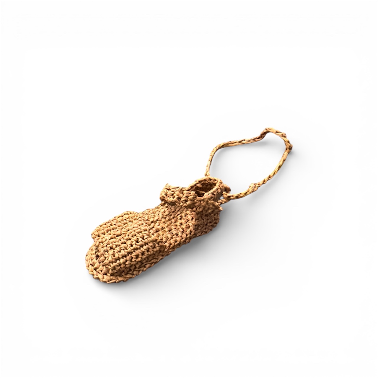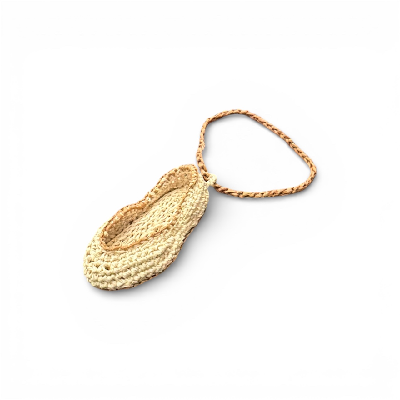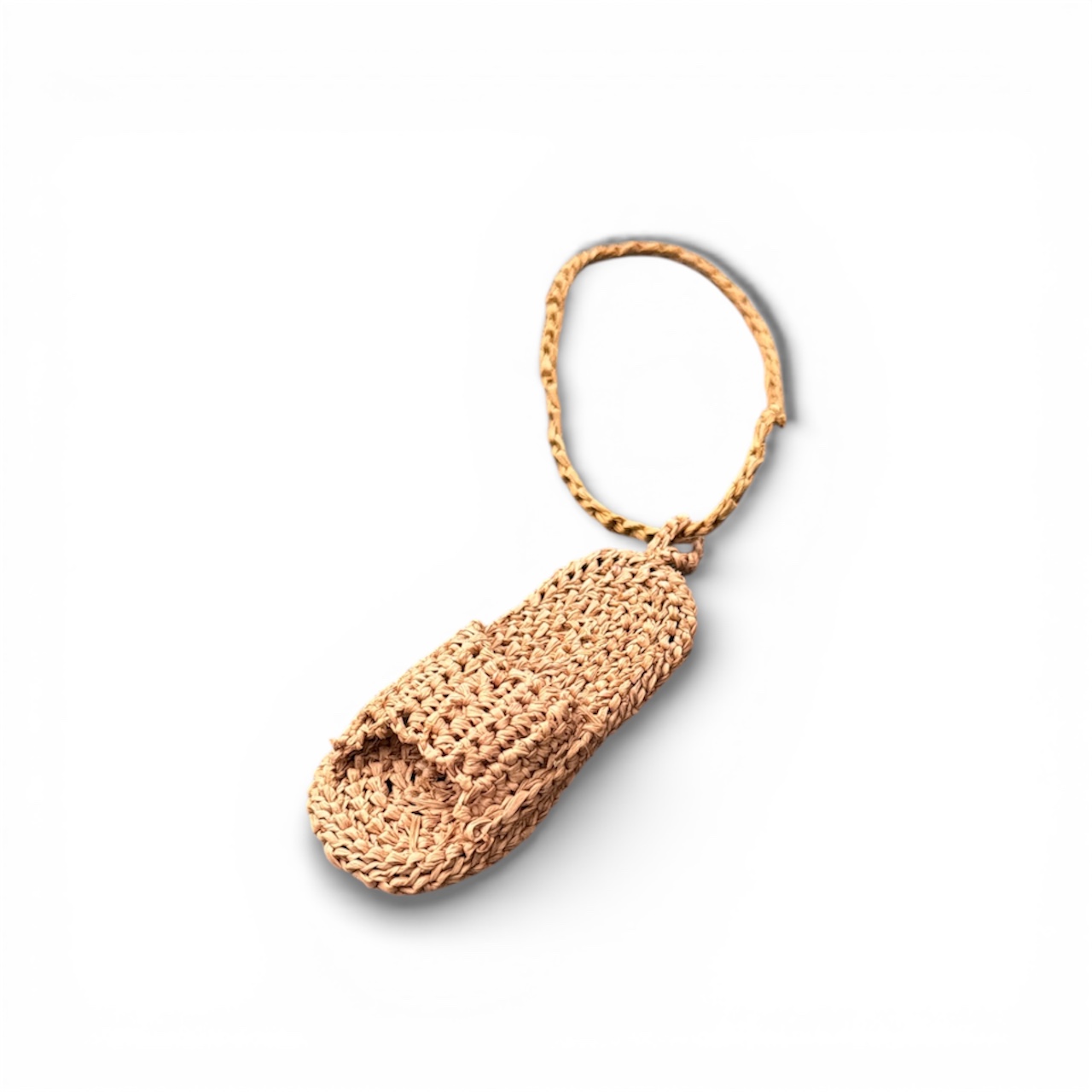 accessoires décoratifs crochetés entièrement à la main avec des fibres naturelles de raphia. Ils apportent une touche artisanale et élégante à vos sacs, paniers ou pochettes. Finition soignée avec détails en raphia et attache en raphia pour une fixation facile.