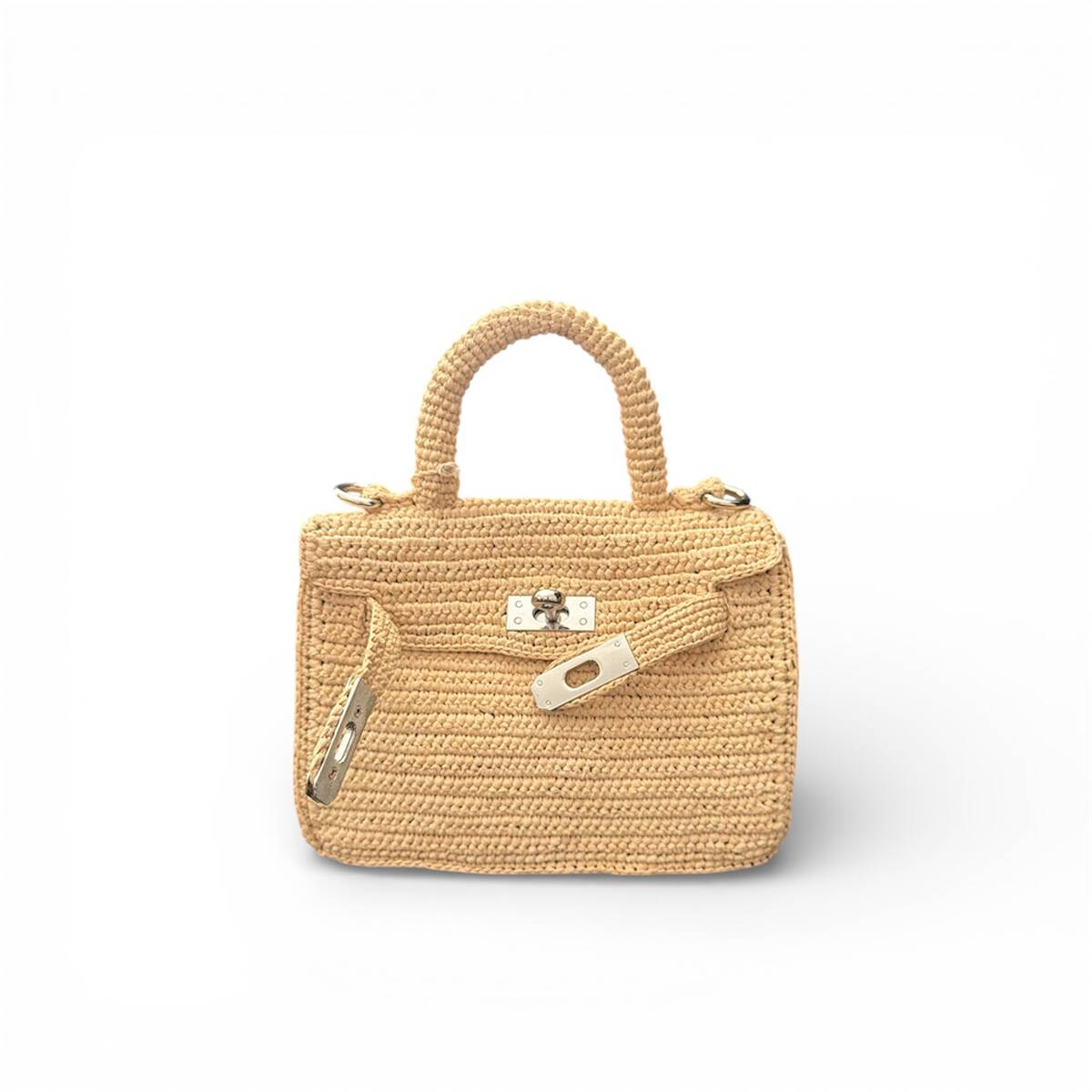 Sac à main JOLIE MINI , est un petit sac crocheté entièrement à la main avec des fibres naturelles de raphia.