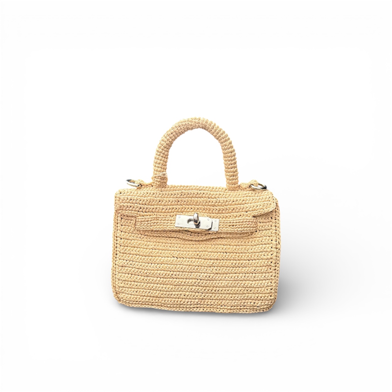 Sac à main JOLIE MINI , est un petit sac crocheté entièrement à la main avec des fibres naturelles de raphia.