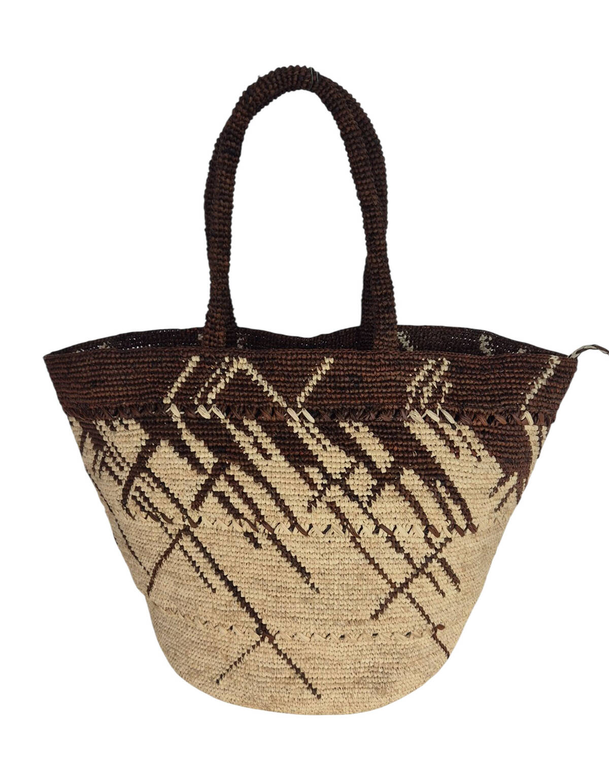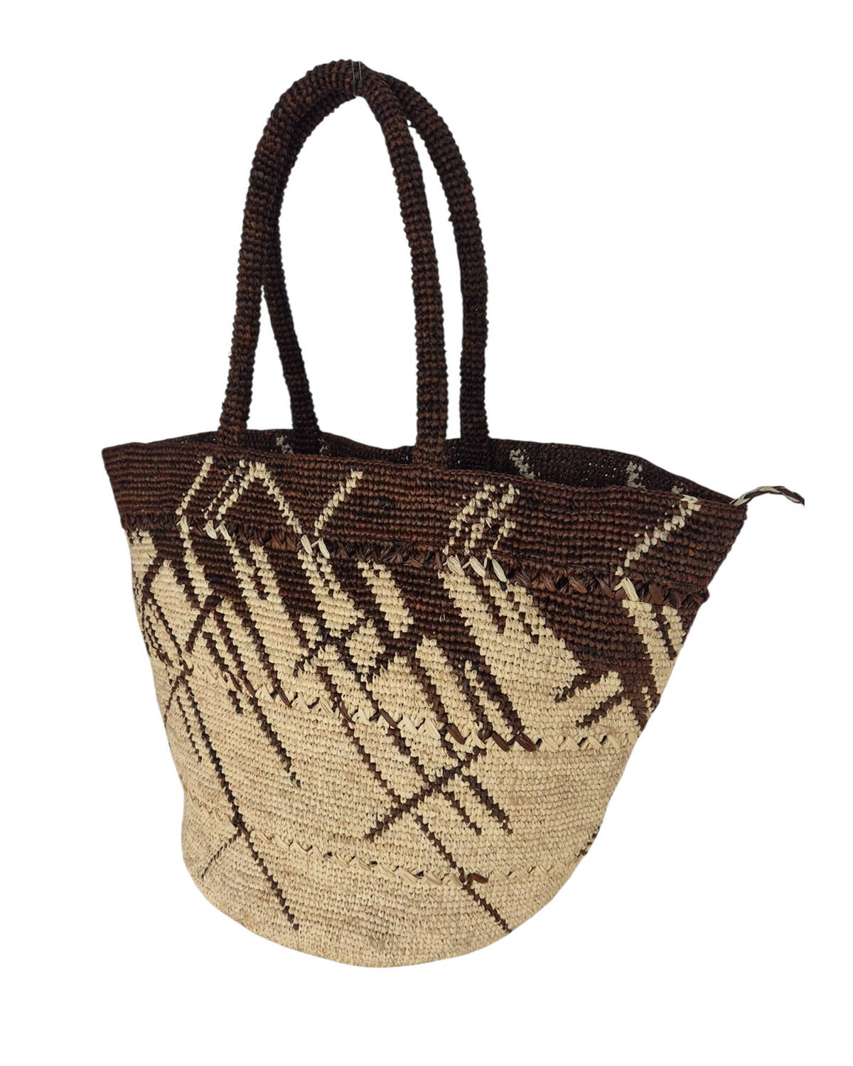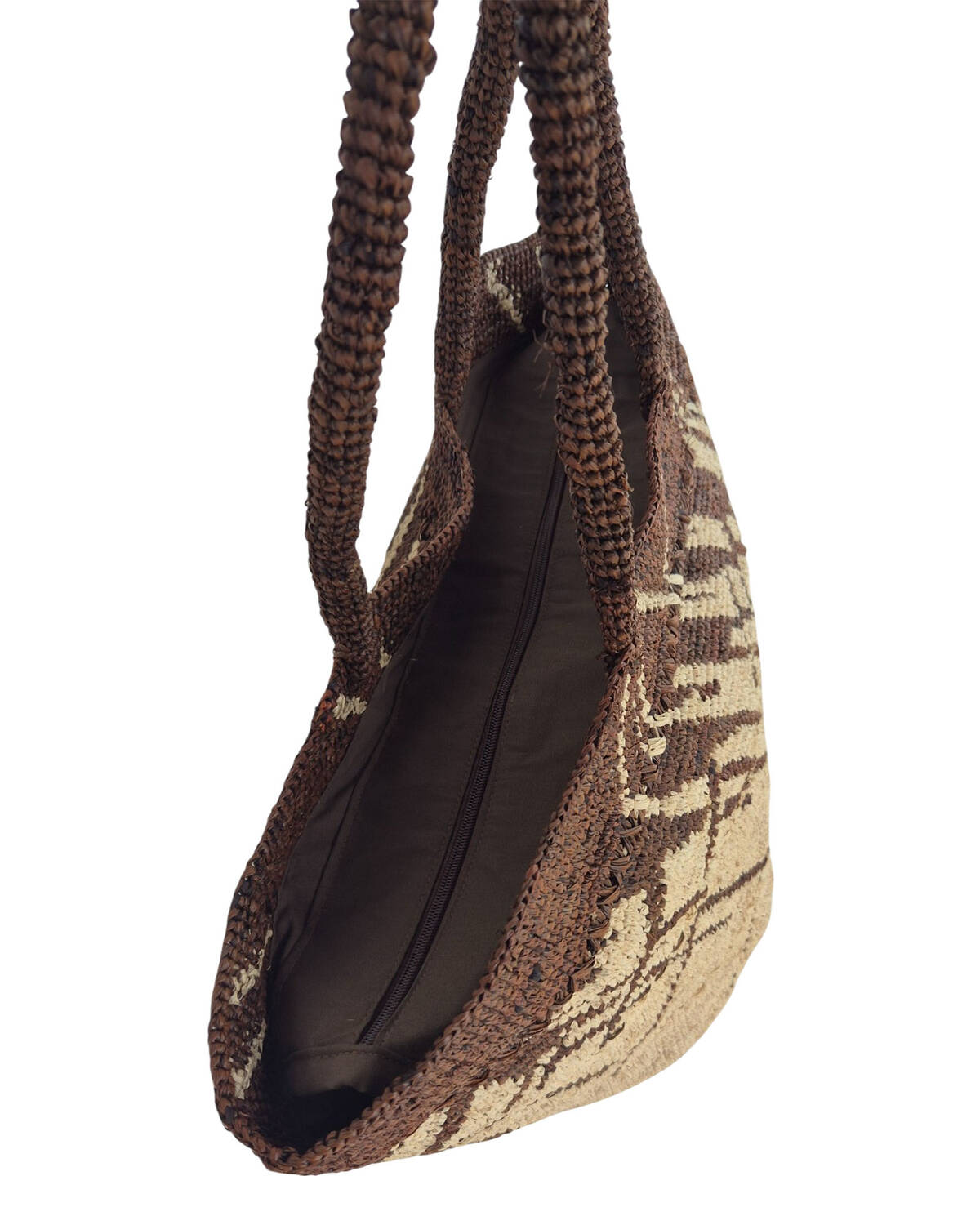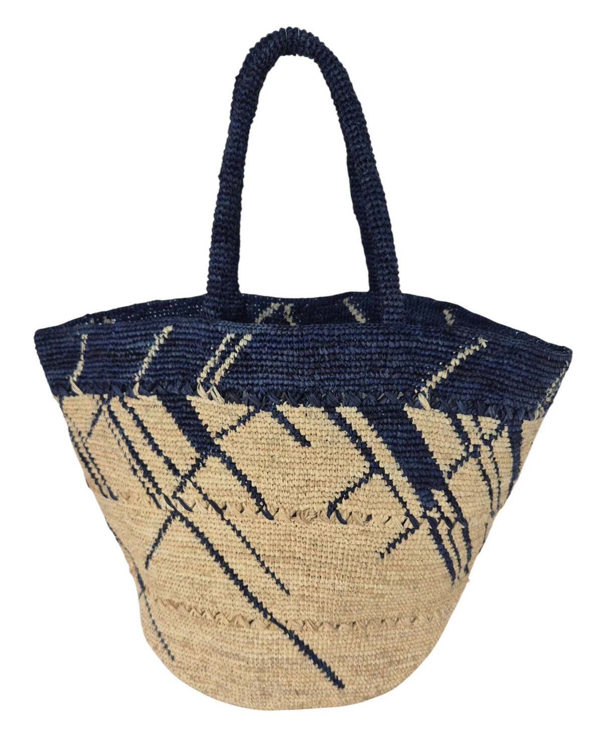Le sac BALIAKA est un sac à fond rond entièrement crocheté à la main avec des fibres naturelles de raphia.