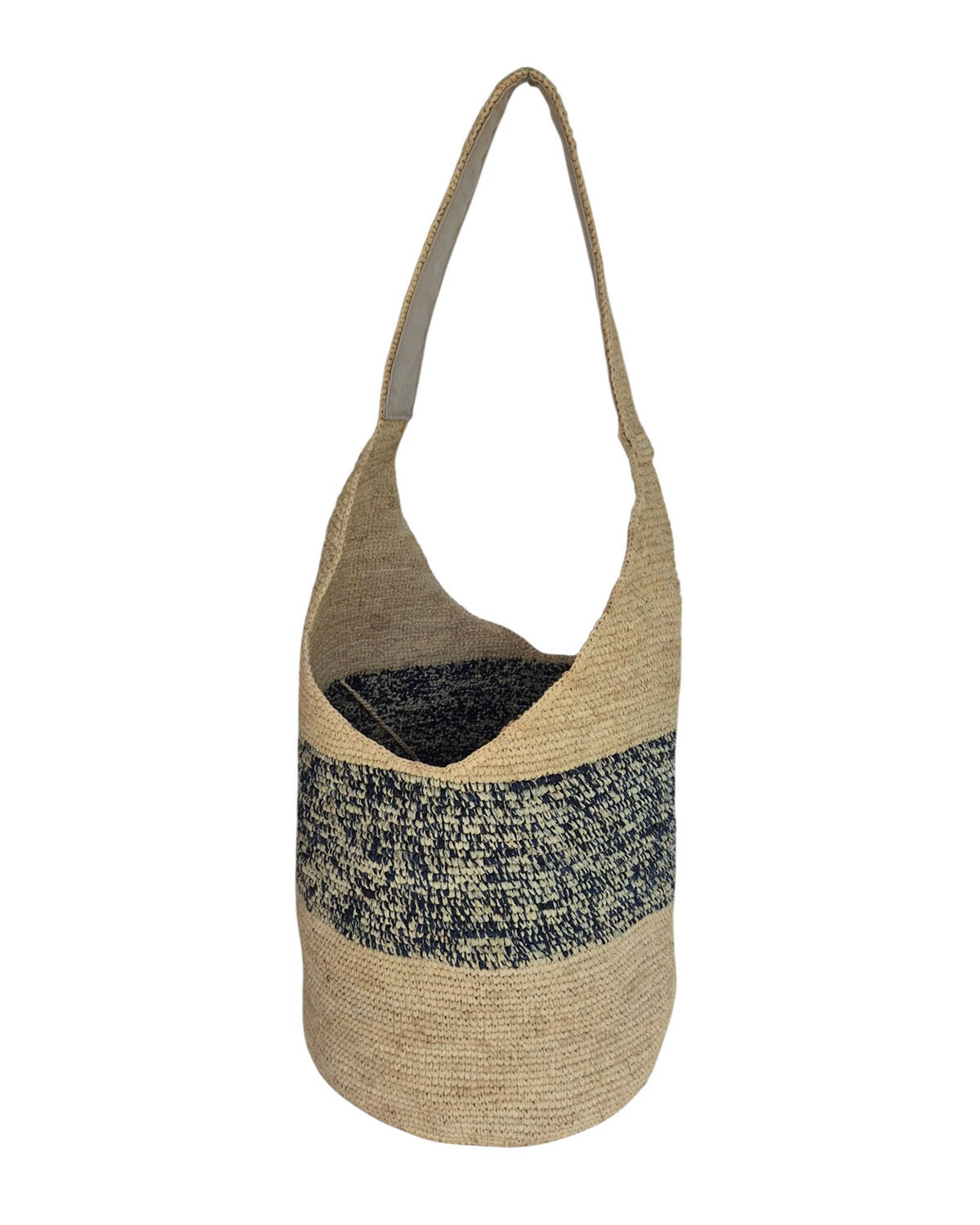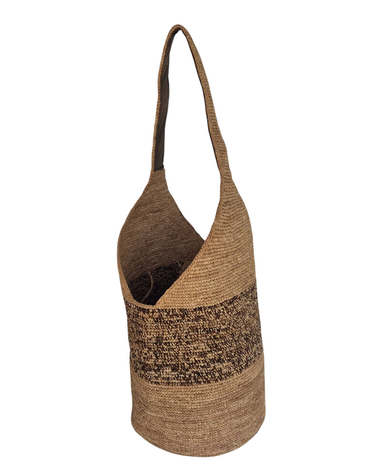 Bandoulière plate en raphia avec doublure tissu.