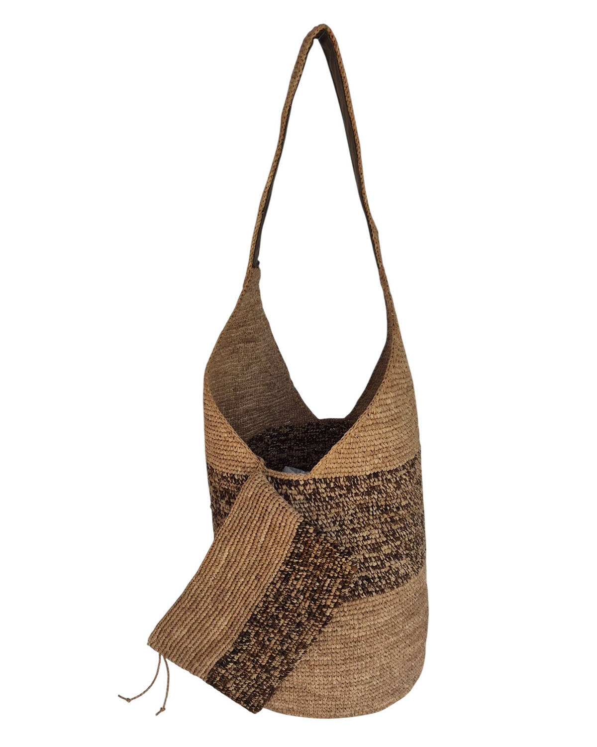 Sac Besace KELLY Dégradé, crocheté entièrement à la main avec des fibres naturelles de raphia.
