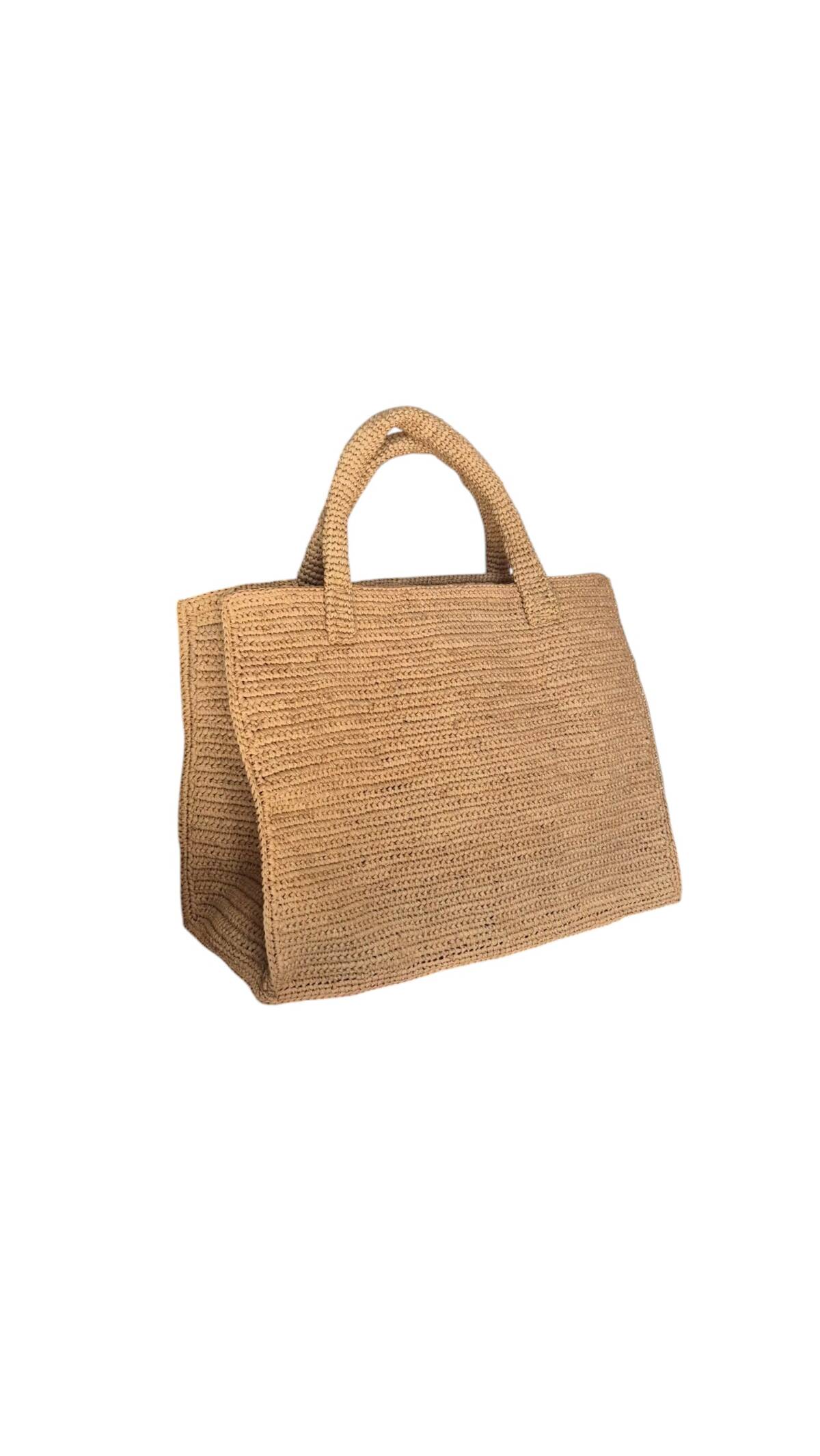 Le sac CARRE est un sac crocheté simple entièrement à la main avec des fibres naturelles de raphia.