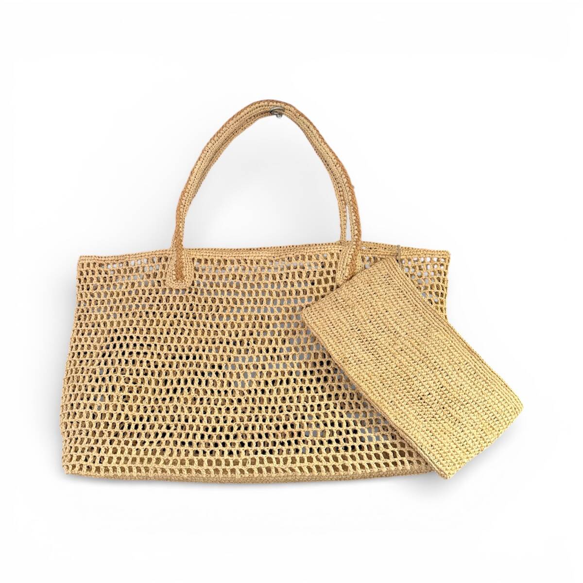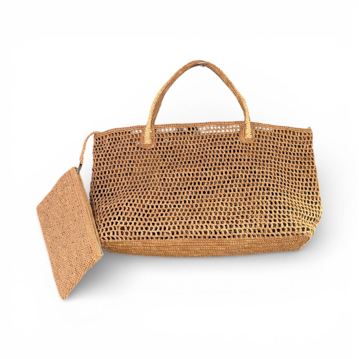 Sac MAILLE BRIDE, crocheté entièrement à la main avec des fibres naturelles de raphia.