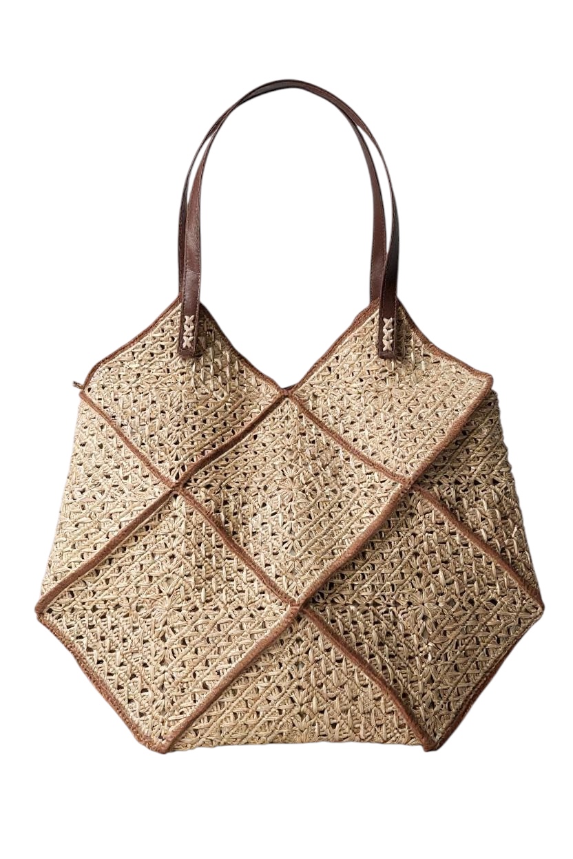 Le sac Vanya est un sac crocheté entièrement à la main avec des fibres naturelles de raphia.