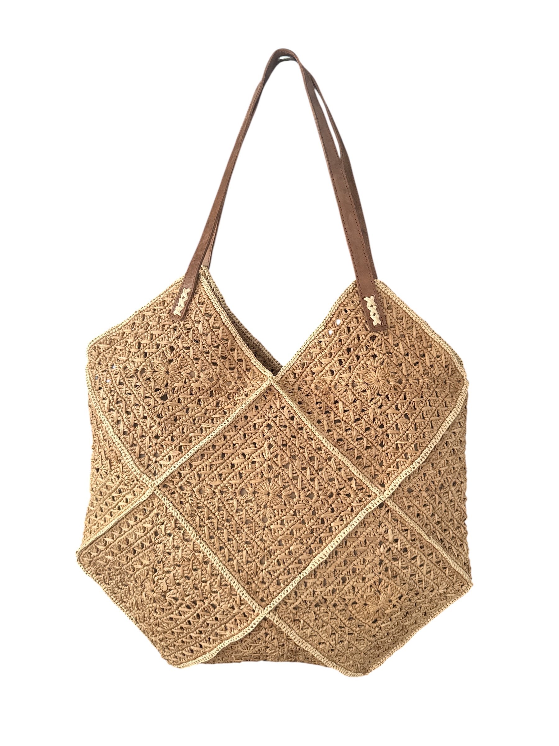 Le sac Vanya est un sac crocheté entièrement à la main avec des fibres naturelles de raphia.