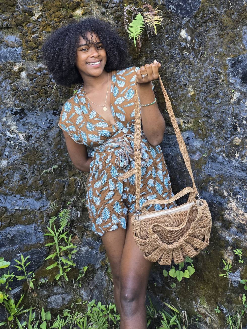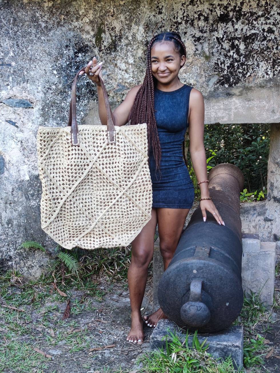 Ce look capture l’essence d’un style naturel, entre minimalisme et authenticité, où chaque pièce raconte une histoire de l’artisanat et du charme intemporel de Madagascar.