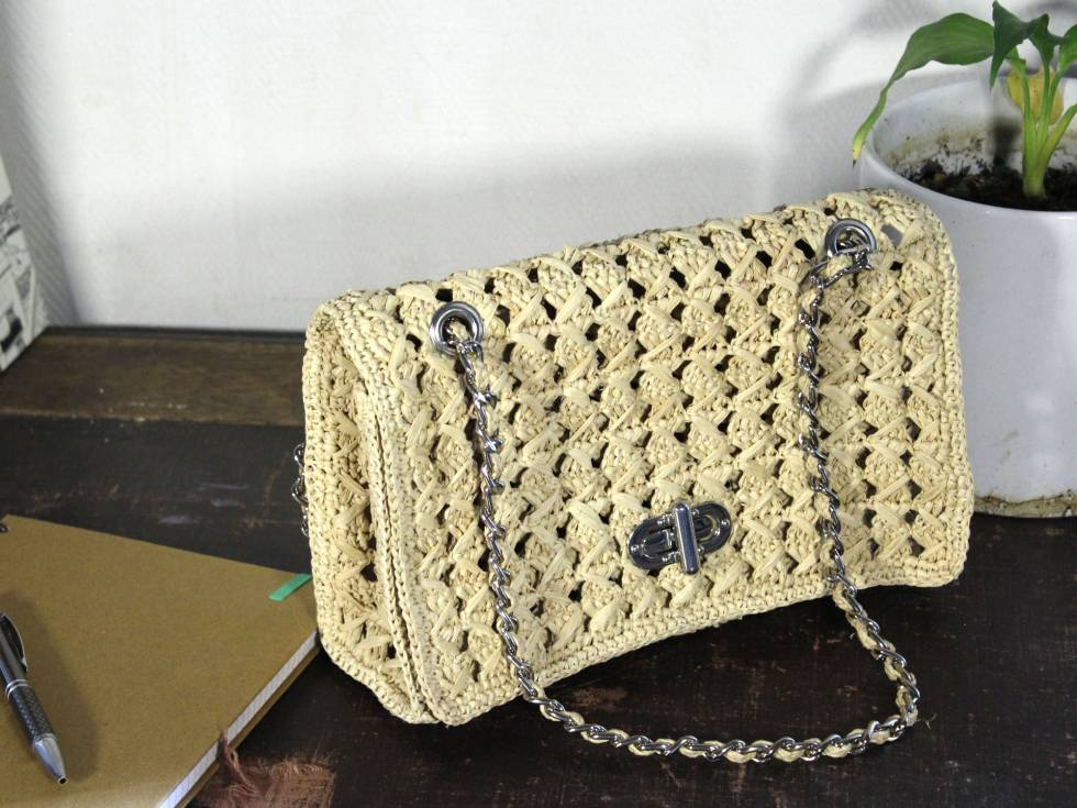 une fibre végétale qui provient des feuilles d’un palmier, appelé palmier à raphia. Le raphia est un produit entièrement écologique. En effet, son extraction permet d’entretenir et de régénérer les forêts à Raphia tout en fournissant un revenu aux populations locales. La fibre est obtenue de la feuille du palmier à raphia grâce à diverses techniques et opérations manuelles. Il peut être utilisé dans son état naturel ou être teinté.